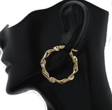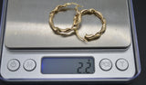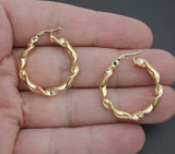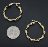 Real 14K Solid Yellow Gold 27.0mm Round Hinged Twist Hoop Earrings 2.2gram
