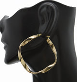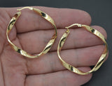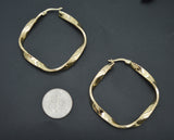Real 14K Solid Yellow Gold 41mm Square Hinged Twist Hoop Earrings 3.2gram
