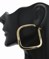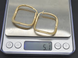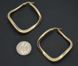 Real 14K Solid Yellow Gold 41.mm Polished Curved Square Hoop Earrings 5.1gram