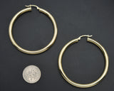 Real 14K Solid Yellow Gold 50mm x 4mm Big Large Shiny Hoop Earrings 5.0gr