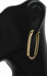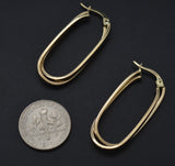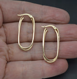Real 14K Solid Yellow Gold Duel Paperclip Inspired Long Hoop Earrings 2.7gr
