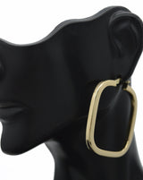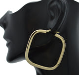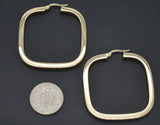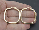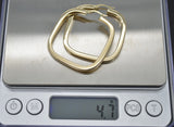 Real 14K Solid Yellow Gold Large Square Shape Shiny Big Hoop Earrings 4.7gr