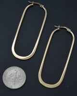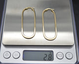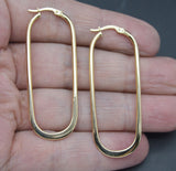 Real 14K Solid Yellow Gold Paperclip Inspired Shiny Long Hoop Earrings 2.8gr
