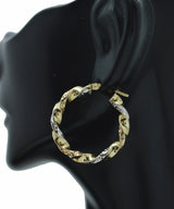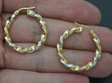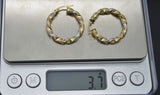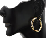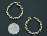 Real 14K Tri-color Solid Gold 27.2mm Round Twist Cut Hoop Earrings 3.7 grams