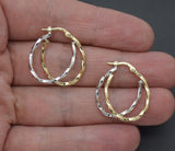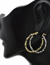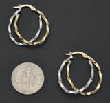 Real 14K Two-tone Solid Gold 24.6mm Shiny Twist Duel Oval Hoop Earrings 1.7grams