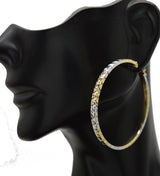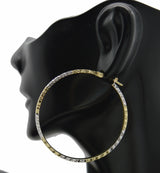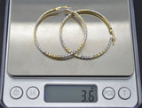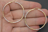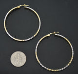 Real 14K Two-tone Solid Gold Diamond Cut Big Large Hoop Earrings 43mm 1.7''