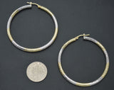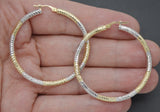 Real 14K Two-tone Solid Gold 45.3mm Big Large Diamond Cut Hoop Earrings 3.7grams