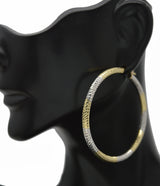 These gorgeous Real 14K Two-tone Solid Gold 45.3mm Big Large Diamond Cut Hoop Earrings are classic yet modern - perfect for making a lasting impression! At 45.3mm, they're large enough to draw attention, but still elegant and lightweight at 3.7 grams. The shrimp cut gives this timeless design a contemporary twist that's sure to amaze you! Make a statement with these stunning earrings.