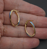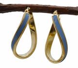 Real 14K Yellow Gold 24.3mm Light Blue Enamel Oval Twist Hoop Earrings 2.0 grams