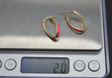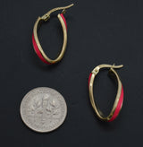 Real 14K Yellow Gold 24.3mm Neon Pink Enamel Oval Twist Hoop Earrings 2.0 grams