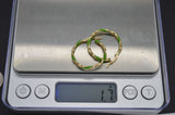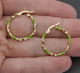 Real 14K Yellow Gold 25mm Green Enamel Round Twist Hoop Earrings