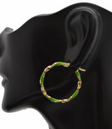 Real 14K Yellow Gold 25.1mm Green Enamel Round Twist Hoop Earrings 1.8 grams