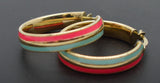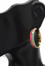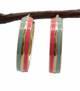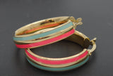 Real 14K Yellow Gold 25mmx5mm Turquoise & Neon Pink Enamel Round Hoop Earrings