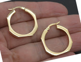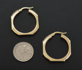 Real 14K Yellow Gold 26.7mm Hexagonal Outside Rounded Inside Earrings 3.3grams