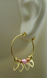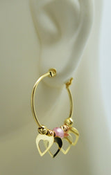 The Real 14K Yellow Gold Hoop Dangling Movable Heart  Pink Bead Earrings 25.8mm is made of high-quality real 14k gold with excellent polishing, making it look gorgeous and sparkling. It is for daily wearing, parties, engagements, weddings, and prom Wearing an initial is a classic way to make a statement, and your personality charm will be brightened up.
