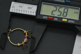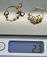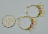 Real 14K Yellow Gold Hoop Dangling Movable Heart Pink Bead Earrings 25.8mm