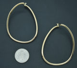 Real 14K Yellow Gold Shiny Polished Big Large Oval Hoop Earrings 3.3gr 2''