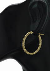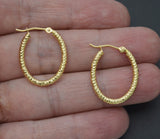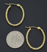 Real 14K Yellow Solid Gold 24.5mm Diamond Cut Shiny Oval Hoop Earrings 2.2 grams