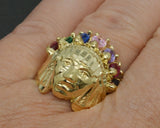 10K Solid Yellow Gold Native American Indian Rainbow CZ ring ALL Sizes