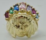 10K Solid Yellow Gold Native American Indian Rainbow CZ ring ALL Sizes