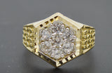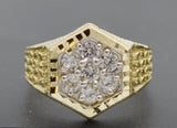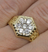 Real 10K Solid Yellow Gold Hexagon CZ Diamond Cut Men's Ring All Sizes