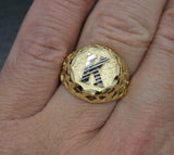 Real 10K Solid Yellow Gold Initial Letter Hip Hop Mens Ring 4.2gr A-Z Sizes 6-11