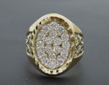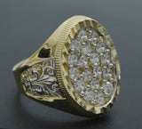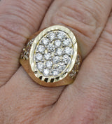 Real 10K Solid Yellow Gold Large Oval CZ Diamond Cut Men's Ring All Sizes