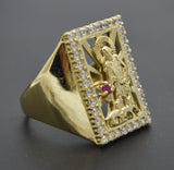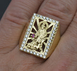 Real 10K Solid Yellow Gold Zirconia And Ruby Lazaro Men's Ring All Sizes 6.6 gr