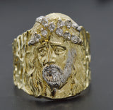 Real 10K Two-tone Gold 24.5mm Men's Jesus Head Nugget CZ Ring 5.2gr ALL Sizes