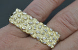 Real 10K Yellow White Gold Men's Rectangular Nugget Diamond Cut Two Finger Ring