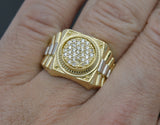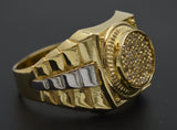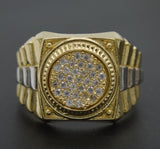 Real 10K Yellow White Gold Two-Tone Square Railroad CZ Men's Ring 6.0gr All Sizes