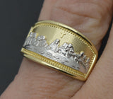 Real 10K Two-tone Solid Gold Last Supper Cross Ring 2.4gr All Sizes