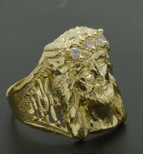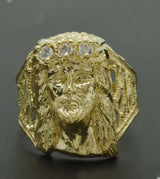Real Solid 10K Yellow Gold 3D Men's Jesus Head Nugget CZ Ring 22mm ALL Sizes