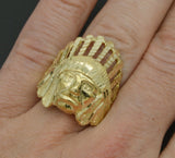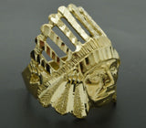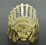 Real Solid 10K Yellow Gold ''BIG'' Men's Diamond Cut Indian Head Ring ALL SIZES