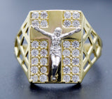 Real Solid 10K Yellow Gold Men's Beautiful Jesus Cross CZ Ring All Size
