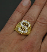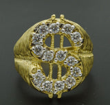 Real Solid 10K Yellow Gold Men's CZ Dollar Sign Ring ALL SIZES