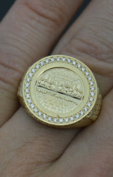 Real Solid 10K Yellow Gold Men's CZ Last Supper Head Ring 17.5mm ALL Sizes