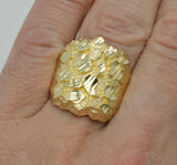 Real Solid 10K Yellow Gold Men's Nugget Square Ring 25mm ALL Sizes