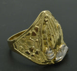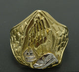 Real Solid 10K Yellow Gold Men's Praying hands Nugget Ring 21mm ALL Sizes