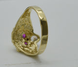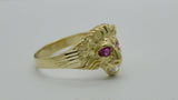 Real Solid 10K Yellow Gold Men's Red Eye Lion Head Ring 2.9 grams ALL SIZES