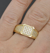 Real Solid 10K Yellow Gold Men's Square Micro Pave CZ Ring ALL Sizes