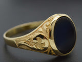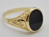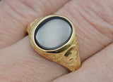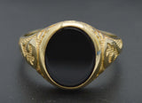 Real Solid 14K Yellow Gold Oval Close Black Enamel Shiny Signet 4.7gr Ring