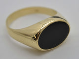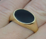 Real Solid 14K Yellow Gold Oval Close Black Enamel Shiny Signet 5.3gr Ring
