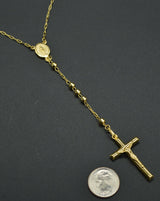 10k Solid Yellow Gold Rosary virgin Mary Jesus Cross Necklace 18'' 9.3 gr
