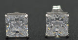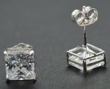 14k Solid White Gold 6.5mm 2.ct Created Diamond Princess-Cut Earrings