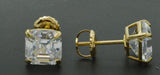 14K Solid Yellow Gold Screw Back 6ct 8mm Asscher Created Diamond Stud Earrings