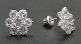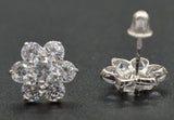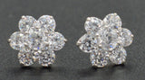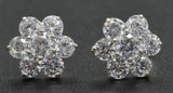 14K Solid White Gold 9.5mm Flower White Cubic Zirconia CZ Stud Earrings