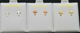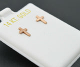 Real 14K Solid Yellow-White-Rose Gold Cross Stud Earrings