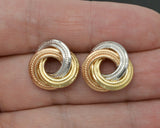 14k Tri-Colored Soild rope Gold Love Knot stud Earrings 16mm