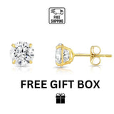 Real 14K Gold Round Moissanite GRA Certified D-VVS1 Push Back Stud Earrings